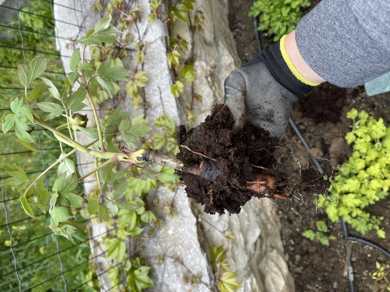 И май в другата тема се оплаках от дървовидните божури тази седмица. Това са присадки. На втория реших да сваля гумения ластик, отдолу имаше канап. Но се разпадна.... превързах го наново но ... 12 лв на вятъра. И първият не ми вьъхва Много доверие...