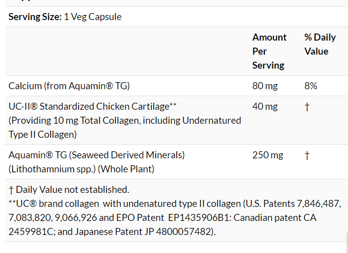 Това е Колаген тип II, a този продукт е специална формула- патент на неденатуриран колаген, който се използва в ниски дози - той е различен от другият тип колаген ( хидролизиран), който се използва в по-високи дози.