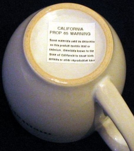 Тези предупреждения се виждат навсякъде в Калифорния в широка гама обстановки, включително, но не само, ресторанти, хранителни магазини, хотели, училища и болници, и на най-различни продукти - чаши, столове, химикали, копчета, чанти....