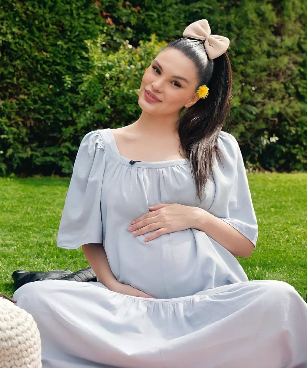 📍Нова поза дойде от Алмеда Абази, съпруга на Толгахан Сайъшман, която брои дните до раждането. Абази, която е бременна в 9-ия месец, обяви, че ще кръстят дъщерите си Алина.