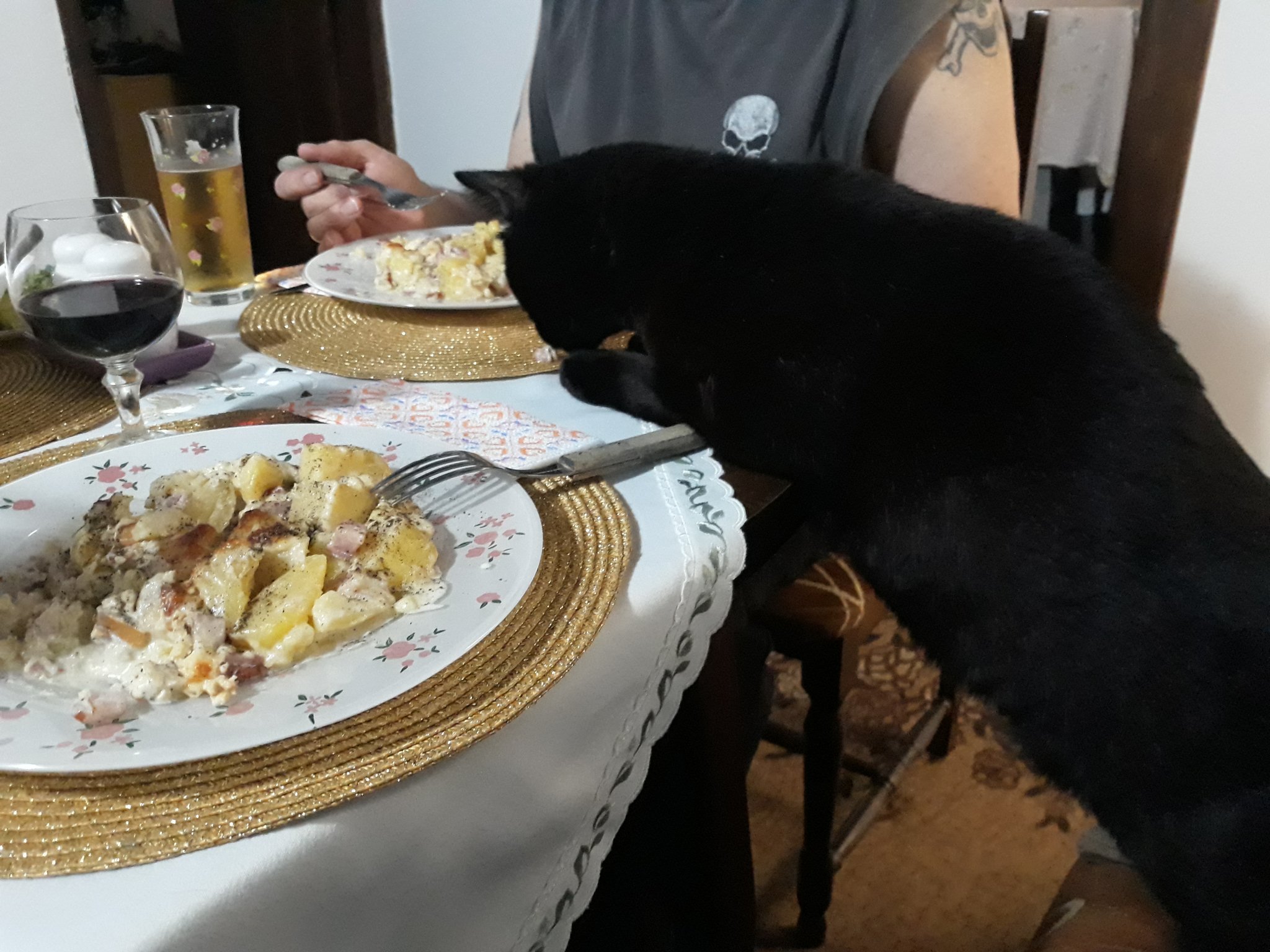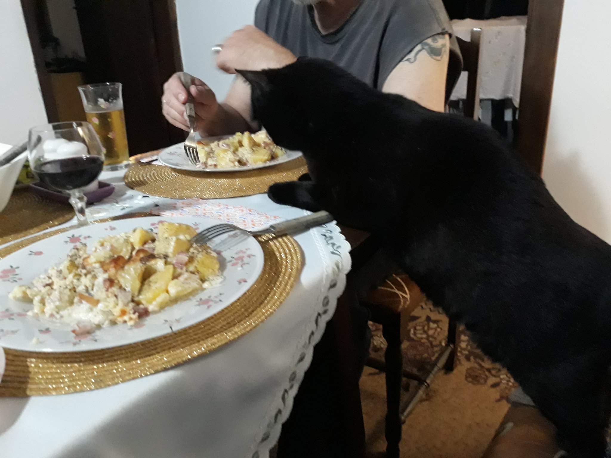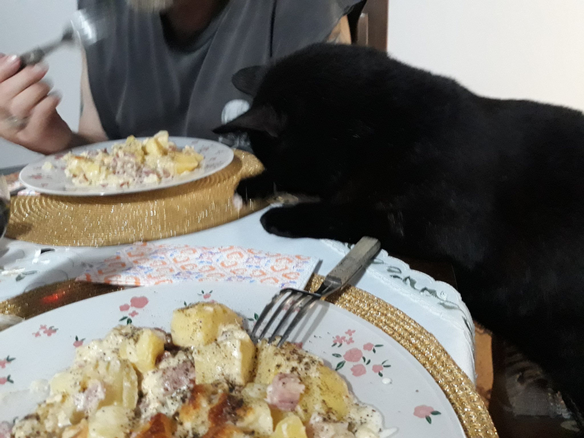 Снощи ходихме на пицария и в местното котило черното коте се оказа момиченце, гледахме му под опашчицата и щяхме да го приберем.