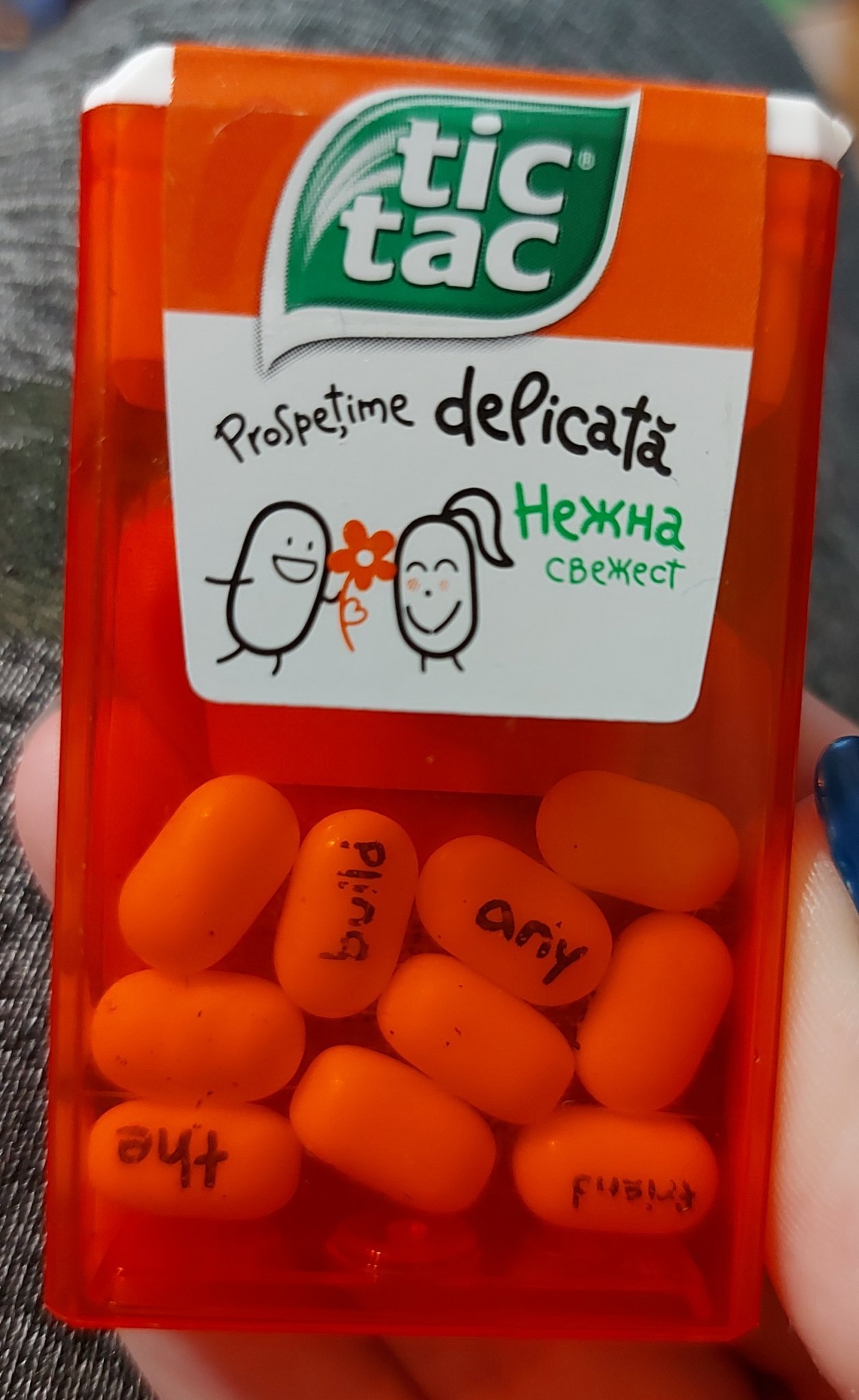 Аз да ви споделя разговор един от днес с дъщеря ми. Купих им от новия тик так , на всяко бонбонче е изписана дума и винаги ме питат коя е думата и почват анализи Joy