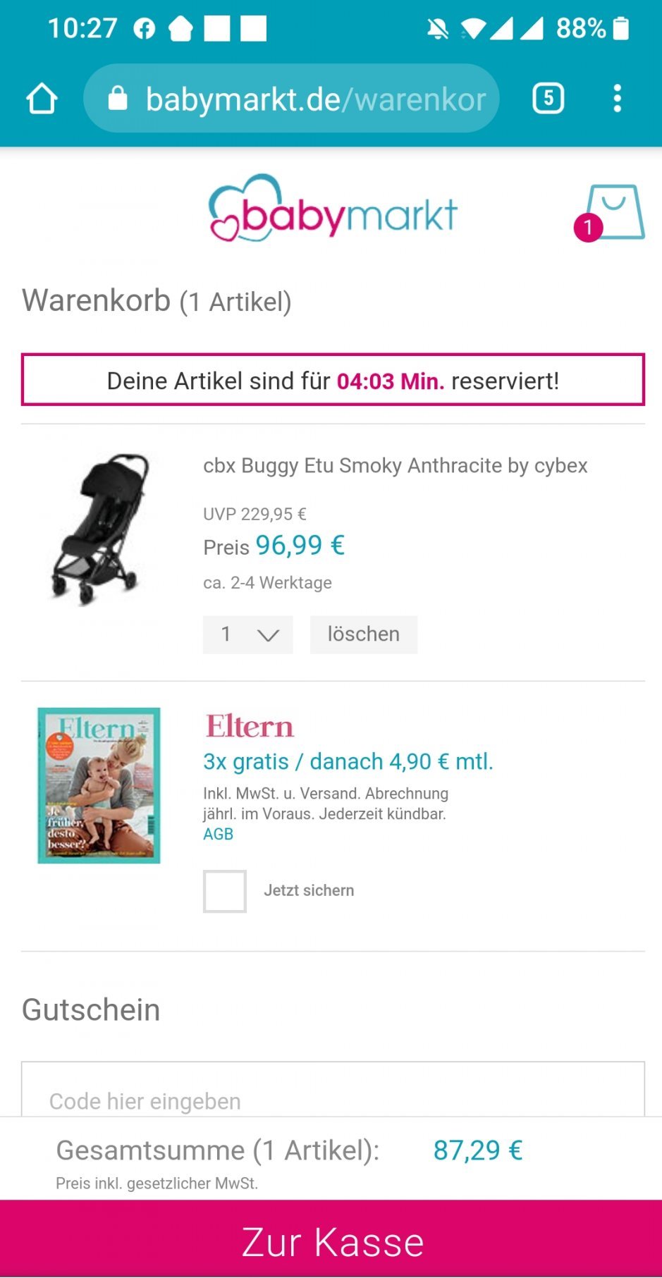 Поръчах на близка CBX Etu. В Babymarkt, с днешния код за намаление идва на 87 евро.