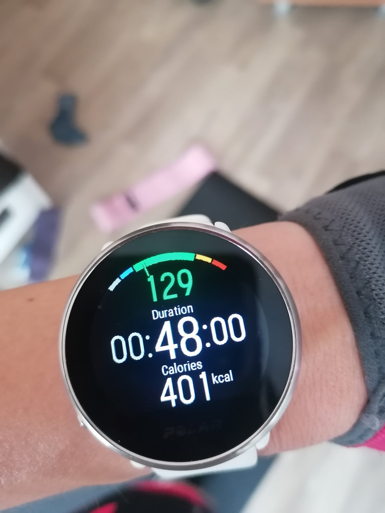 Ето резултатът след тренировката. Снимах часовника, защото после продължих с 15 мин корем