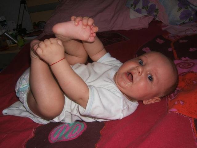 Да споделя , нещо ново от вчера, което все още не съм открила на какво се дължи. Опъва се като струна. Ето пример: лежи и иска примерно да я вдигна, гепва ме за пръстите, обаче вместо до седнало положение се изправя. Или примерно седи на столчето или в количката и изведнъж се опъне. Незнам дали е някакво желание да седи вече права, да бъде взета на ръце, или нещо я боли, я корем , я кръстче. Ще продължавам с наблюденията, но ако някой има в сходна ситуация да сподели.