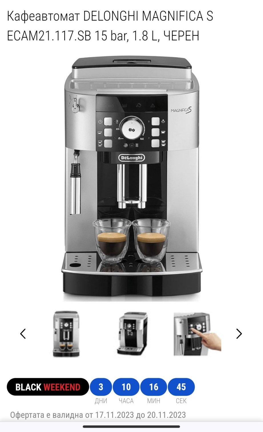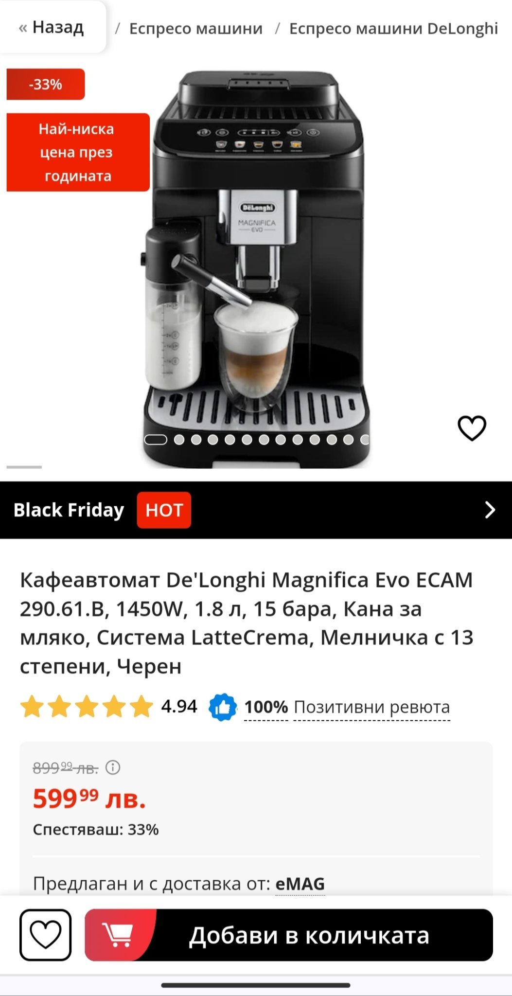 Аз пък поръчах от Емаг Делонгито, за тези пари си е сделка. На няколко места видях, че модела се произвежда в Италия, ще я видим тази като дойде.