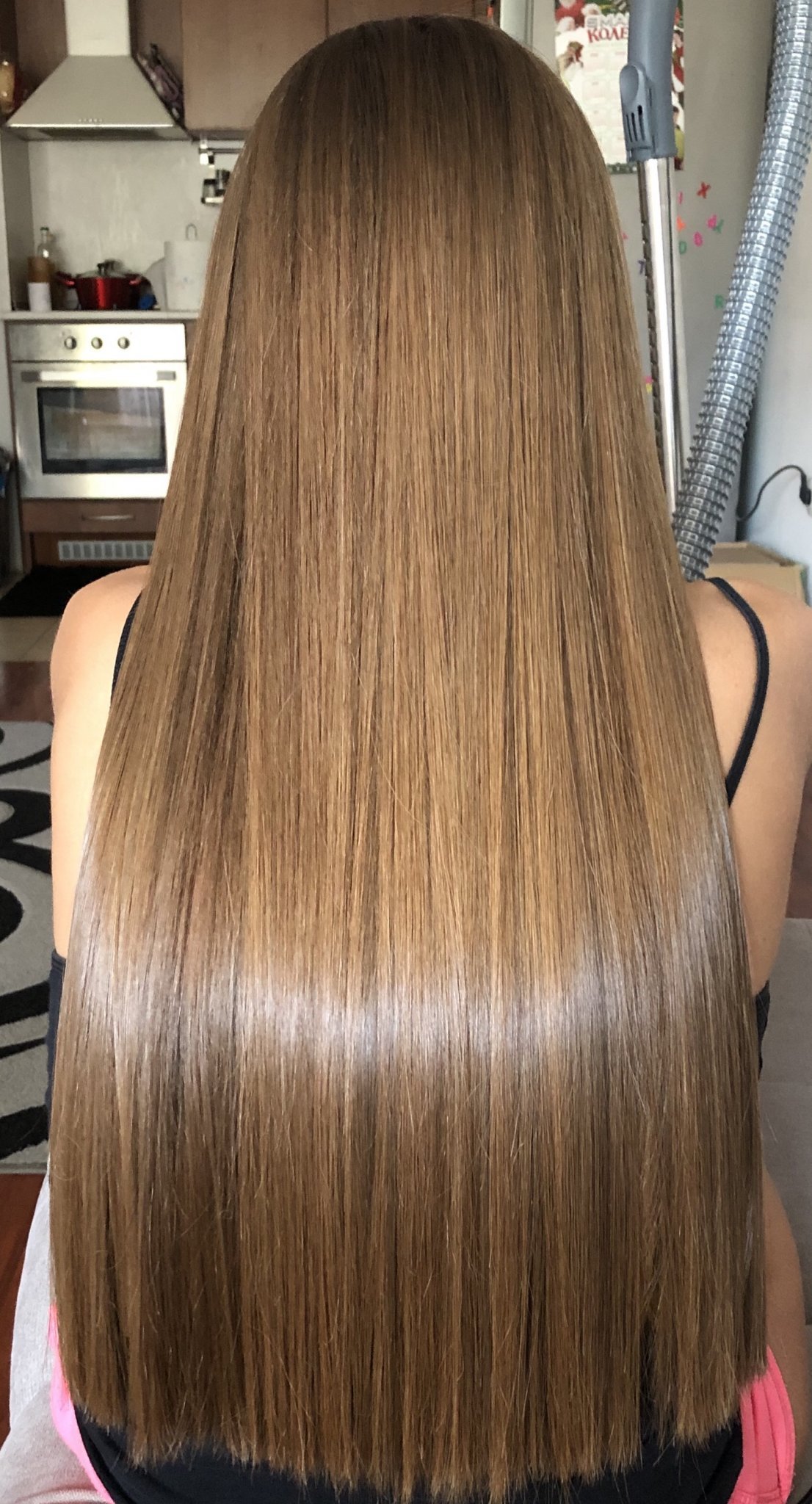 По темата с Алфапарф споделям резултатите от този продукт, с който аз си изправям трайно косата сама /след кератинова терапия във фризьорски салон/, а направих и колежка:
