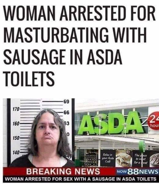 Жена арестувана, защото се е самозадоволявала с наденичка в тоалетната на ASDA. Joy