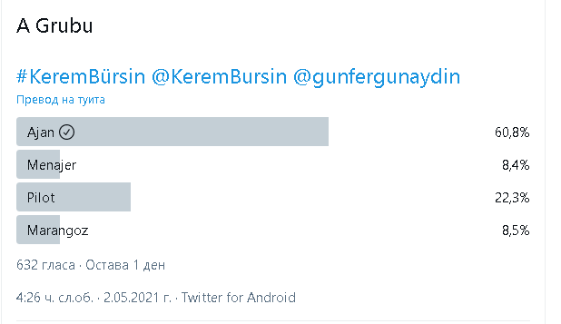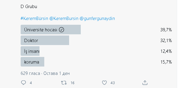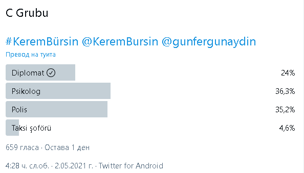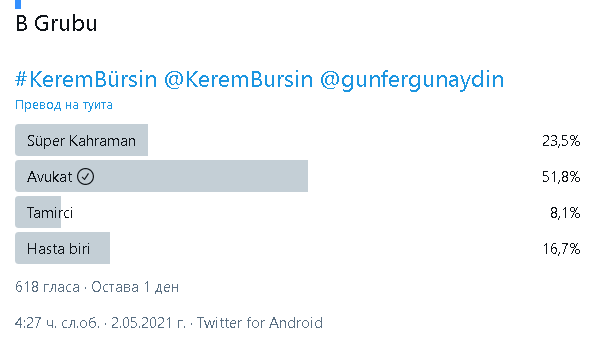 Има пусната анкета в Twitter:  "В каква роля бихте искали да гледате Керем Бюрсин в бъдеще?