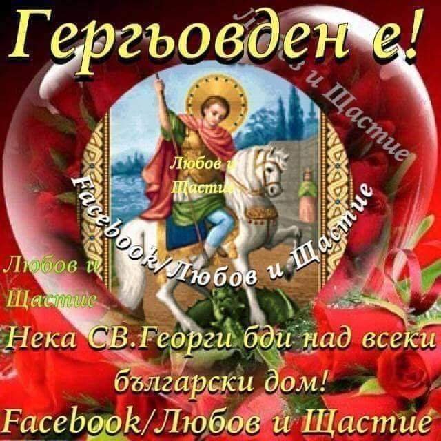 Честит празник - Гергьовден! Ден на храбростта и Българската армия ! Нека Свети Георги ни дава надежда, сила и воля във всяко изпитание.Животът е хубав, ако човек не се страхува  ,бори се смело и отстоява щастието и любовта си ,за да бъде  победител !