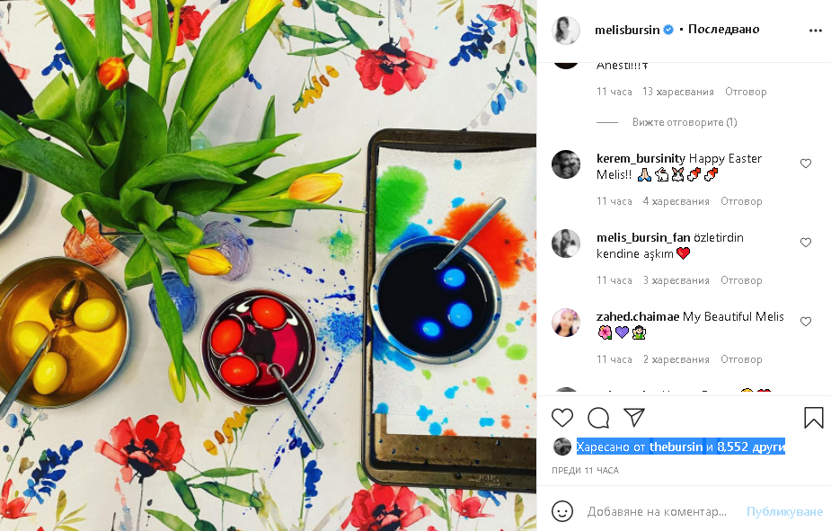 Поста на Мелис е харесан и от Керем Бюрсин...