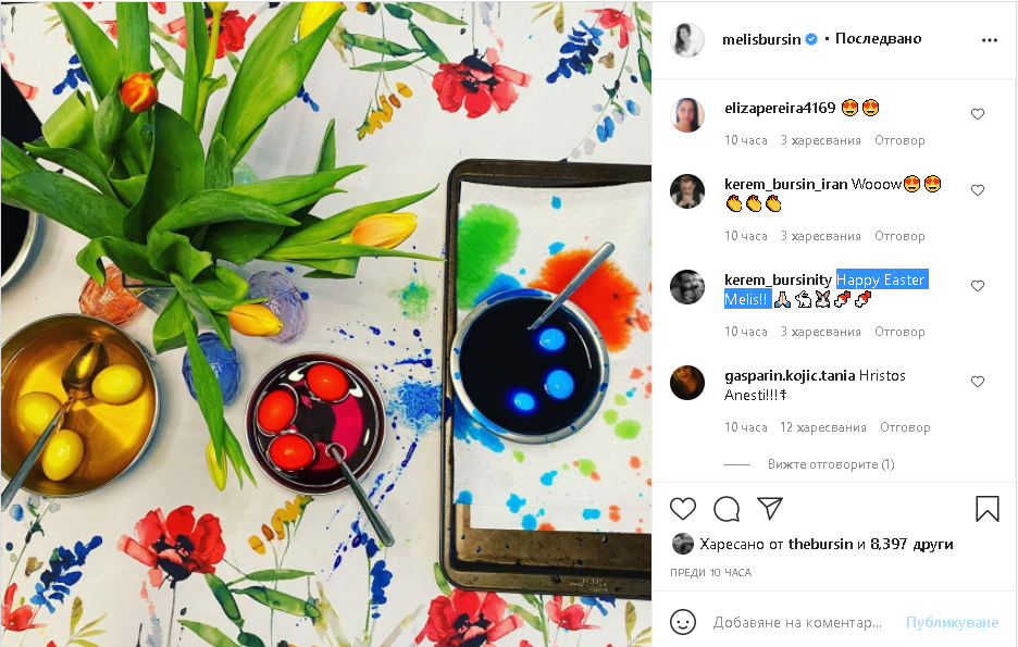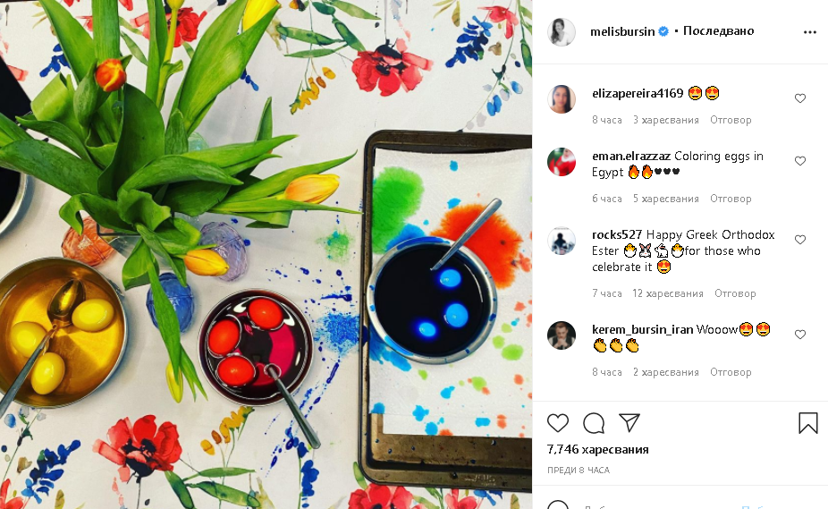 Възхитена съм от възпитанието на тези двама брат и сестра. Възпитани да обичат  и да приемат всички хора по света, независимо от тяхната религия. Съпругът на Мелис е египтянин. В Египет освен мюсюлмани има и ортодоксални християни. С този свой пост тя поздравява всички православни християни по света с Воскресение Христово.