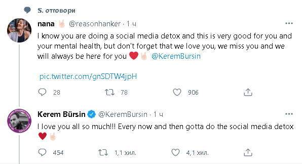 Ето как е отговорил Керем на една фенка в социалните медии