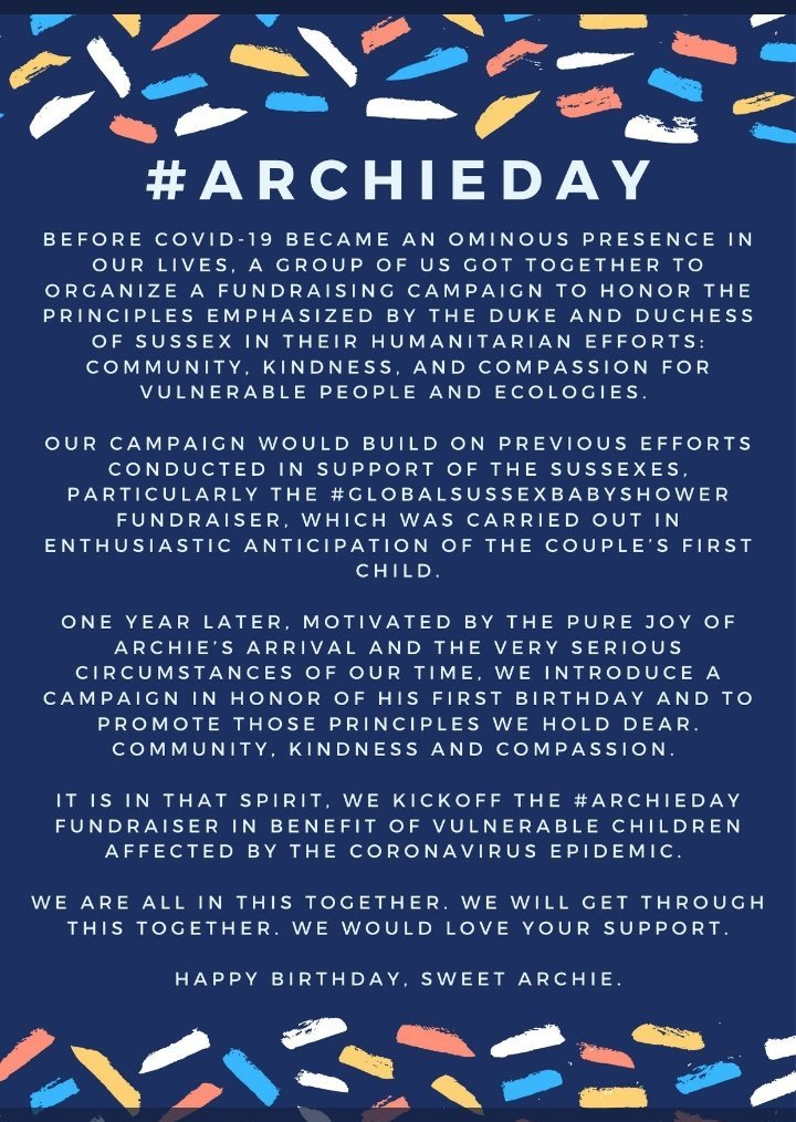 ...Събрали са 50000 долара в чест на Арчи, които ще отидат за дарения по инициативите на Съсекс.
