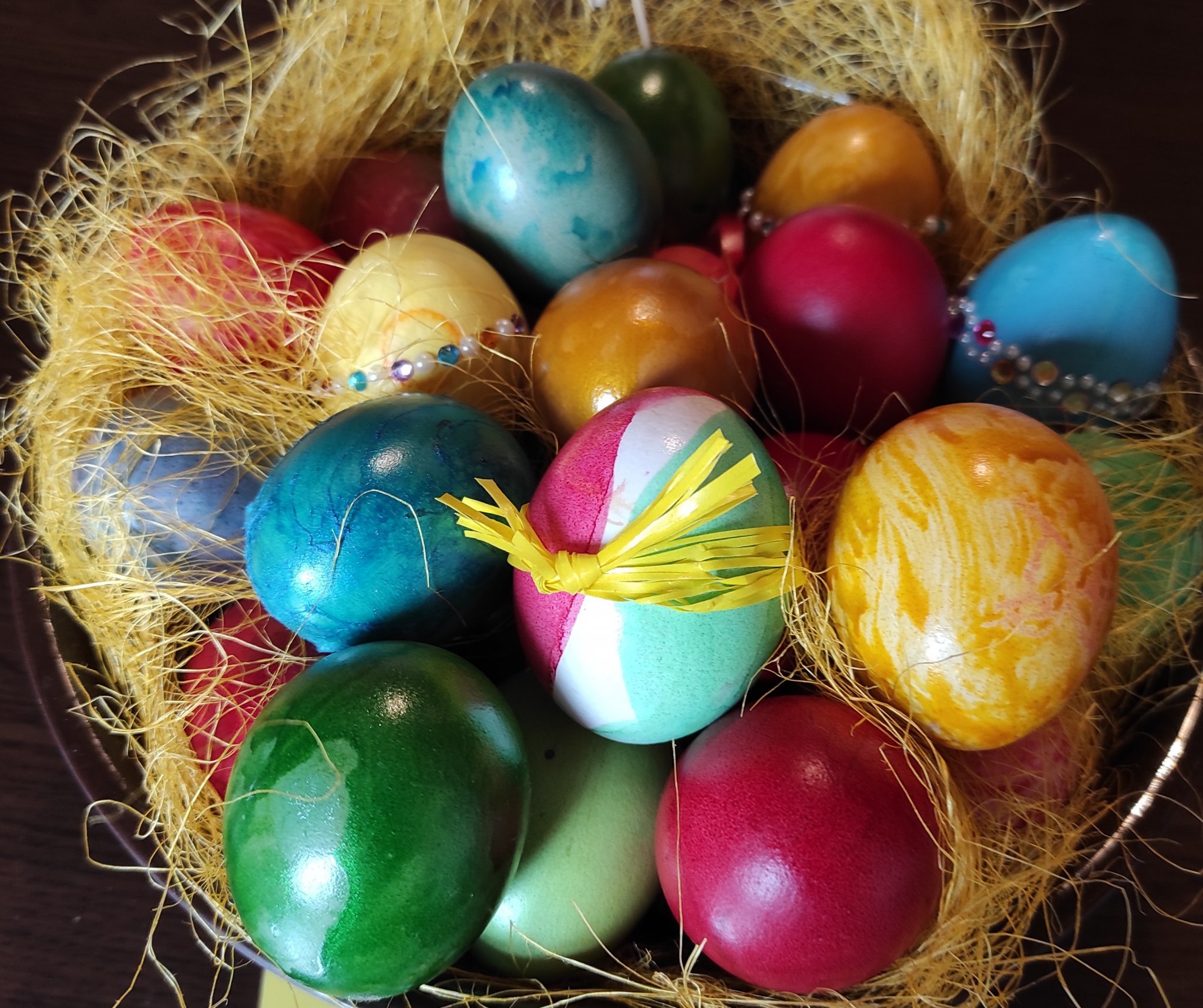 Баба и внучка се справиха с боядисването на яйцата без мен тая година, затуй не съм снимала, да не се хваля с чуждия труд. Инак не са лоши, и няма много счупени.