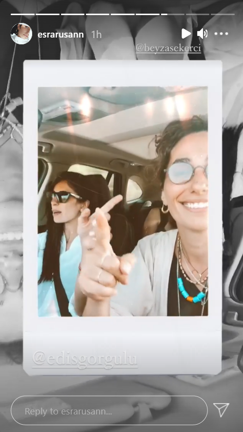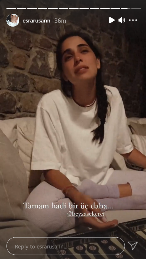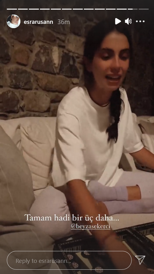Eсра, Бейза и Енгин са заедно и с децата, на заден план се виждат Гюн и Джан.