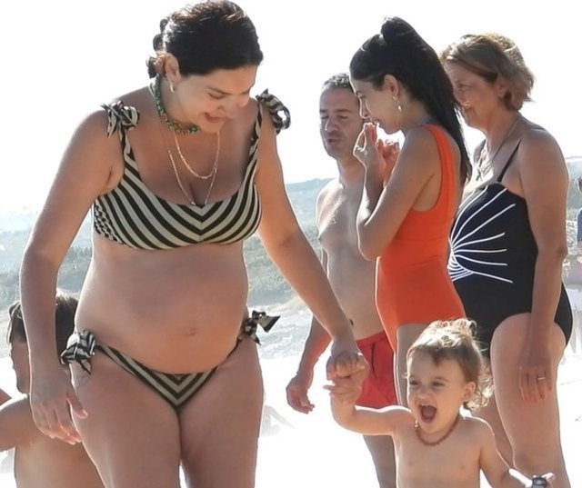 Растущий живот Бергюзар Корель попала в объектив, когда она играла в морские игры со своими сыновьями Ханом и Али.