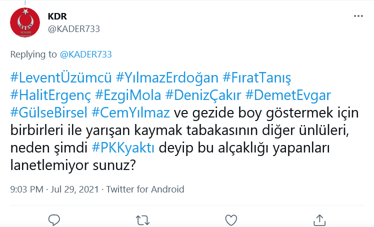 В ТТ ердогановците веднага се сетиха за протестите в защита на парк Гези, за да обвинят участниците, вкл. Халит. Защо мълчали и не казвали, че пожарите са предизвикани от кюрдската ПКК, защо не я проклинали за подлостта.