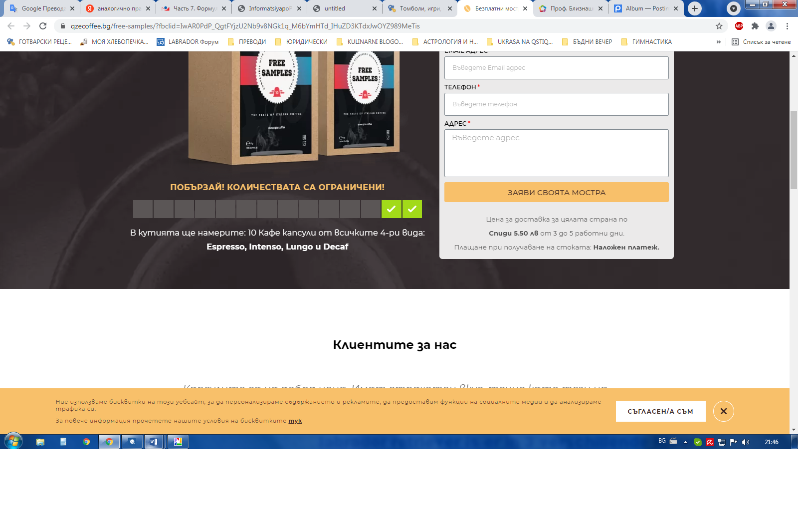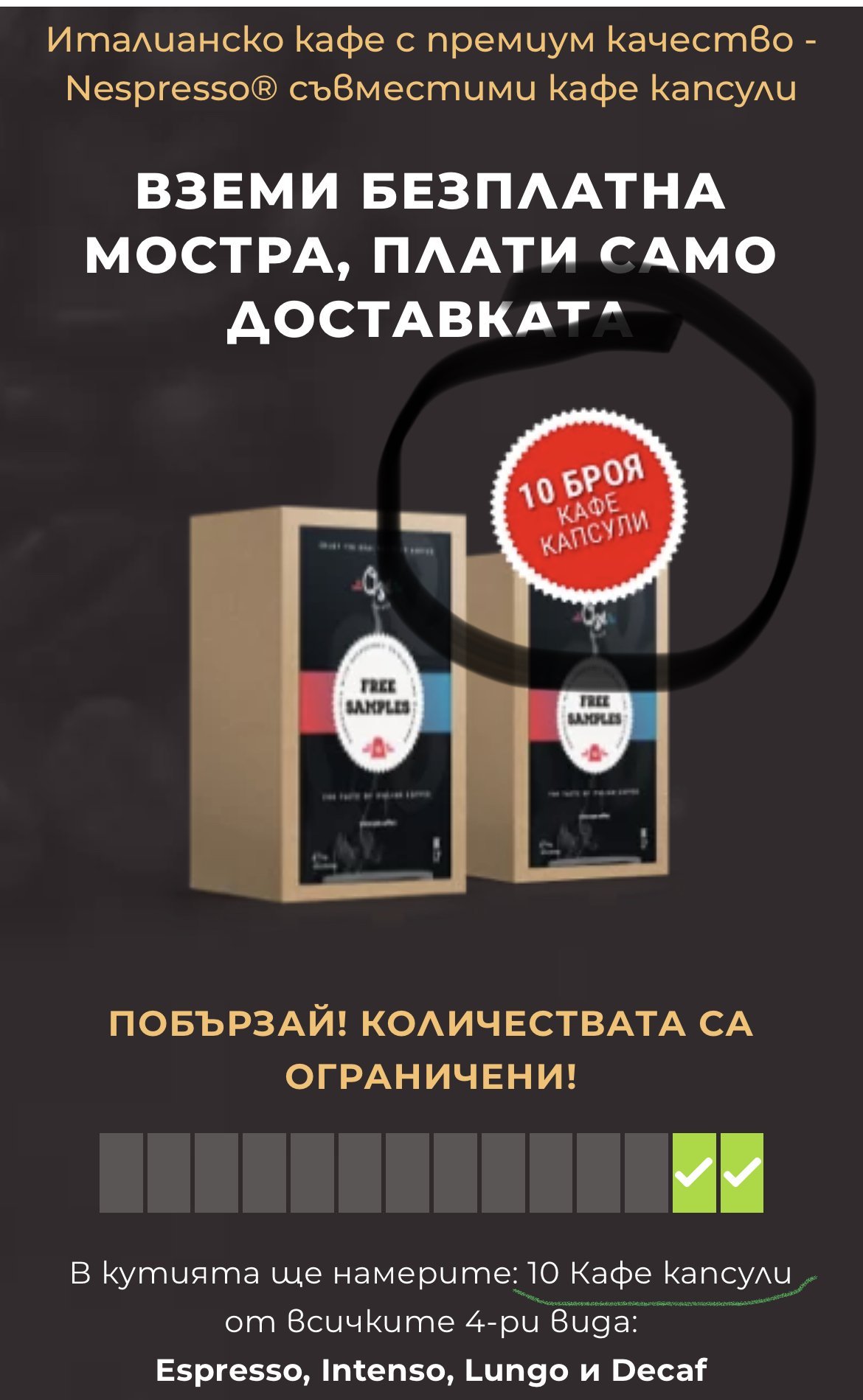 Някви безплатни / мостри/ кафе. Плаща се само доставка 4,50 лв.