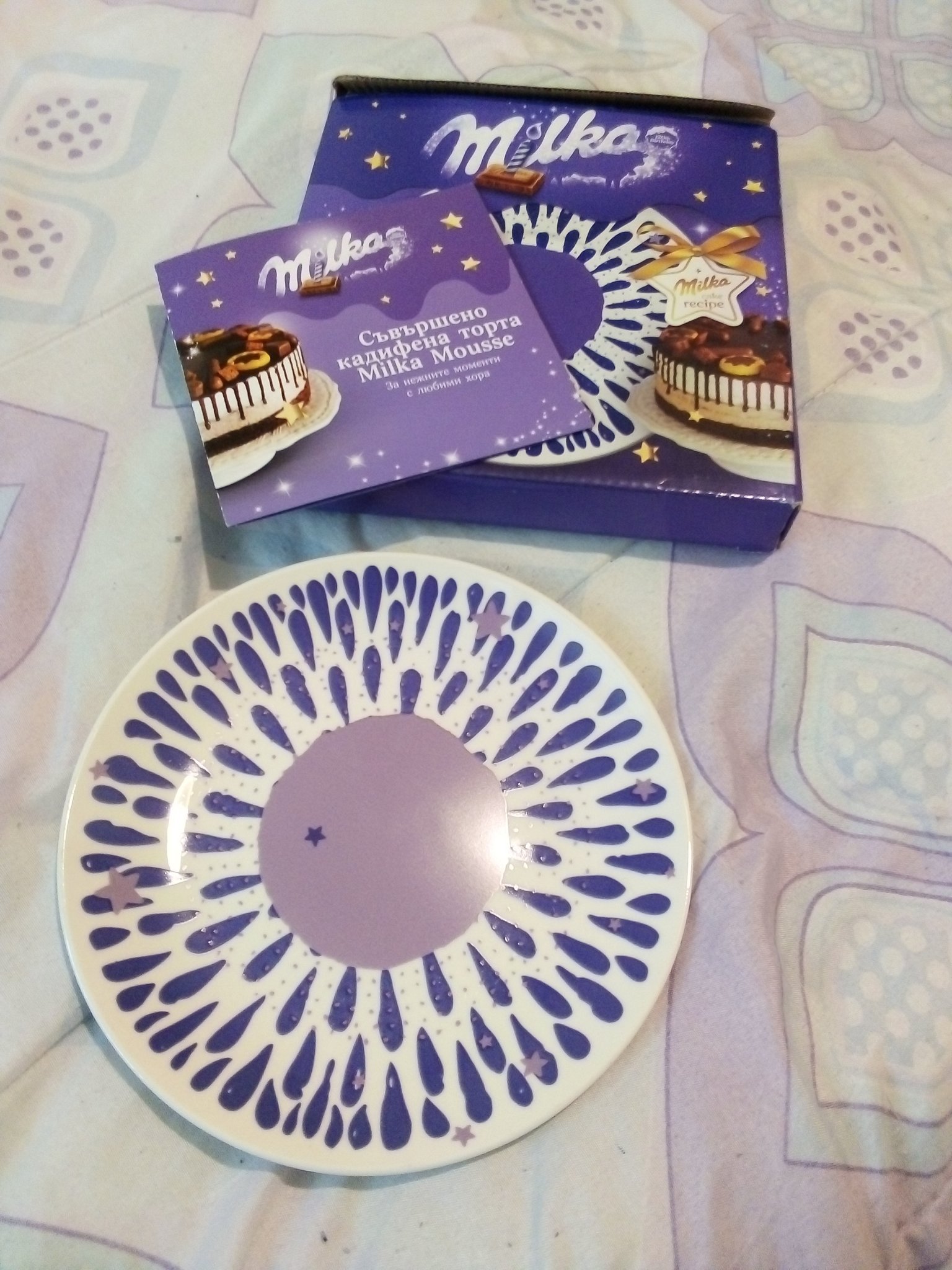 От играта на Милка за продукти за поне 4 лв. във Фантастико. Диаметър на чинията - 17,5 см. Очаквах да е по-голяма, а тя за едно парче торта (пък аз си мислех за цяла торта).
