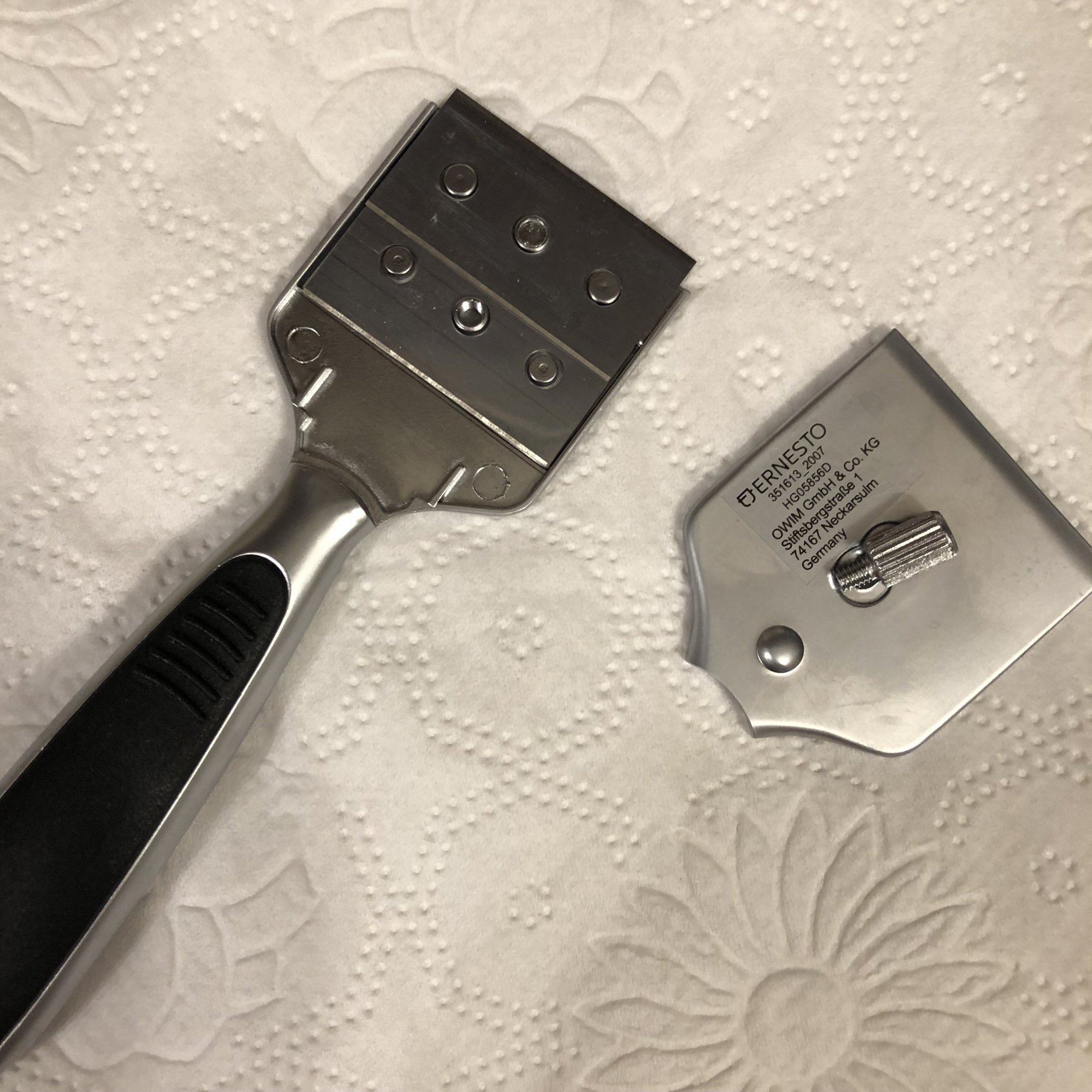 Има на снимката едно стърчащо винтче - то се развърта, за да се освободи острието или пък да се покрие и предпази, когато не се ползва.