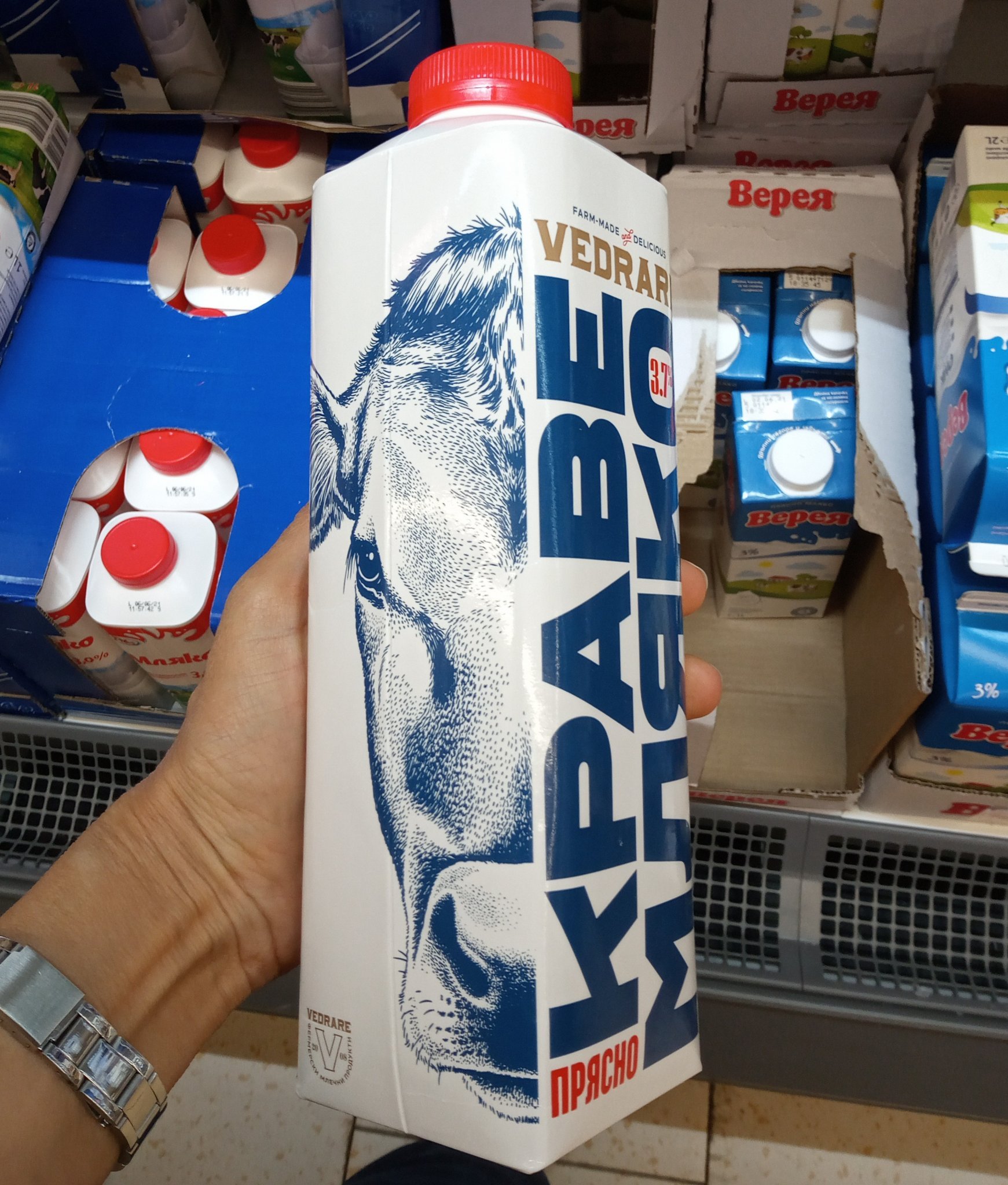 Такова прясно мляко Ведраре не съм виждала тук по магазините . То и кисело само в Лидл срещам .