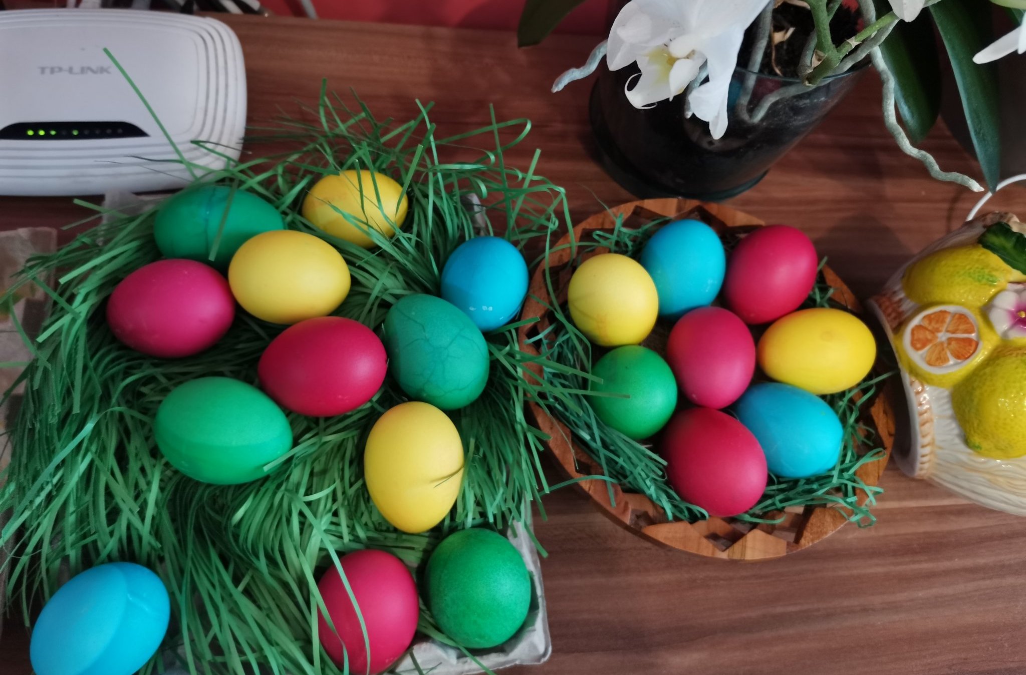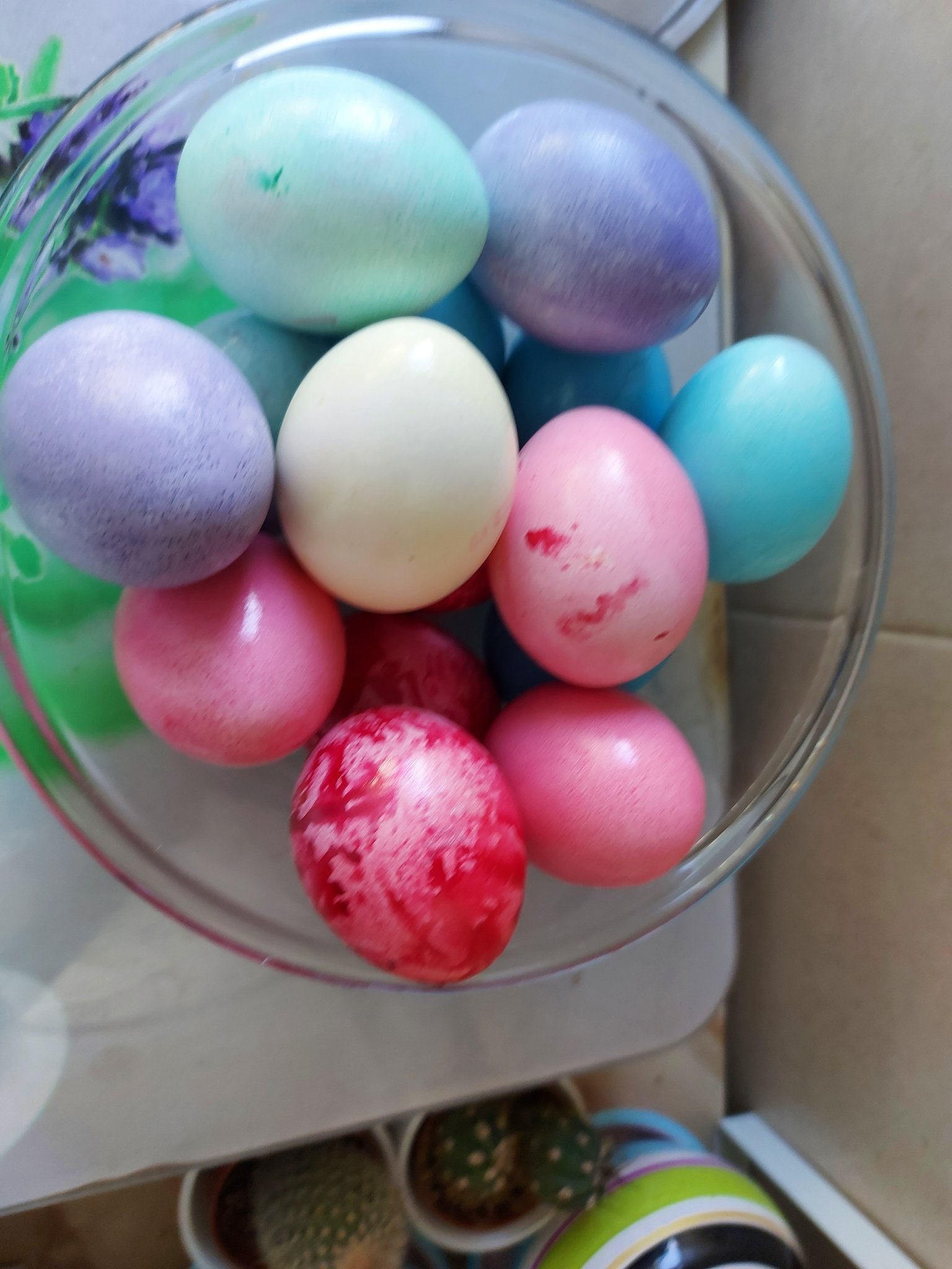 Преди бях взела от най-простите дето всяка година си боядисвам, че ни с кристали успявам, ни с разни перли и т.н. от тези дето са като антибиотик 6 броя в тясна опаковка , някакви стотинки. Сутринта почвам и чета указанията на лидълските, че нали ще се показвам и доказвам, ама нещо..страх ме хвана, те в чаша да чакам 4-7 минути яйцето ми то отиде ми деня за 28 яйца всяко по 5 мин. мани-мани. Пък взех антибиотиците и айде...станаха много наситени , миналата година жълтия не ми хвана. Прочетох , че лидълските са до 2023 г., та другата година живот и здраве ще се пробвам от ранни зори да видя, че ми е мерак. Да похваля и яйцеварката, че само 2 пукнати имам, преди в тенджерата толкова здрави имах. Не са нещо яйчицата, ама биват-шаренки, пъстрички, мажа ги после с памуче и малко олио и те лъсват. После може да ги снимам, като цяло съм доволна, ама не са като вашите определено.  Та..който са му останали от боите и не ги е ползвал да не ги хвърля, имат доста срок на годност.