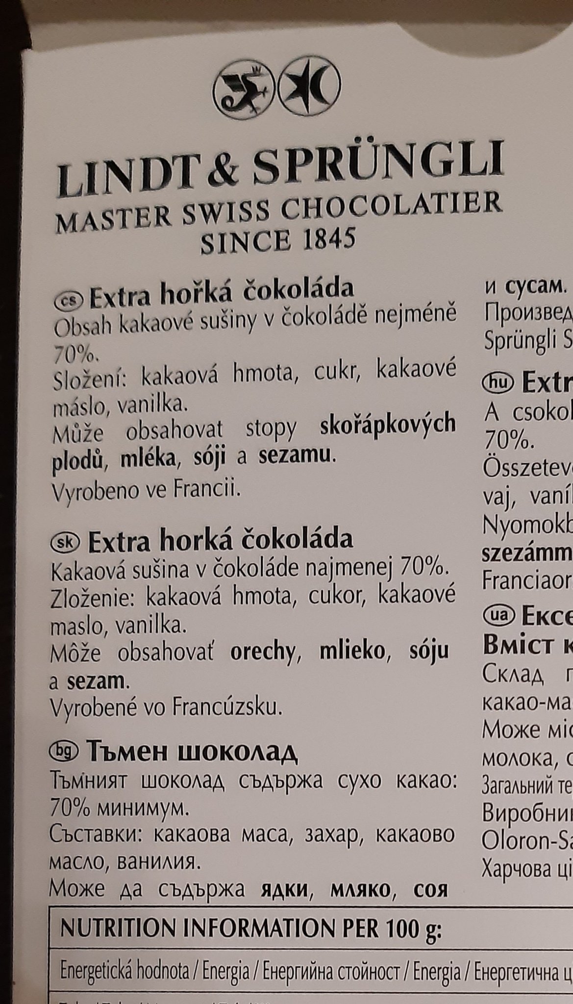 Тази статия е от 2019 г. Явно е имало промяна в състава междувременно. Нямам вече под ръка опаковката на Lindt шоколада, но кутийката бонбони още стои. На нея си пише това, което и в този линк в ЕБаг: https://www.ebag.bg/shokolad-lindt-lindor-mlechen-100-g/5145.