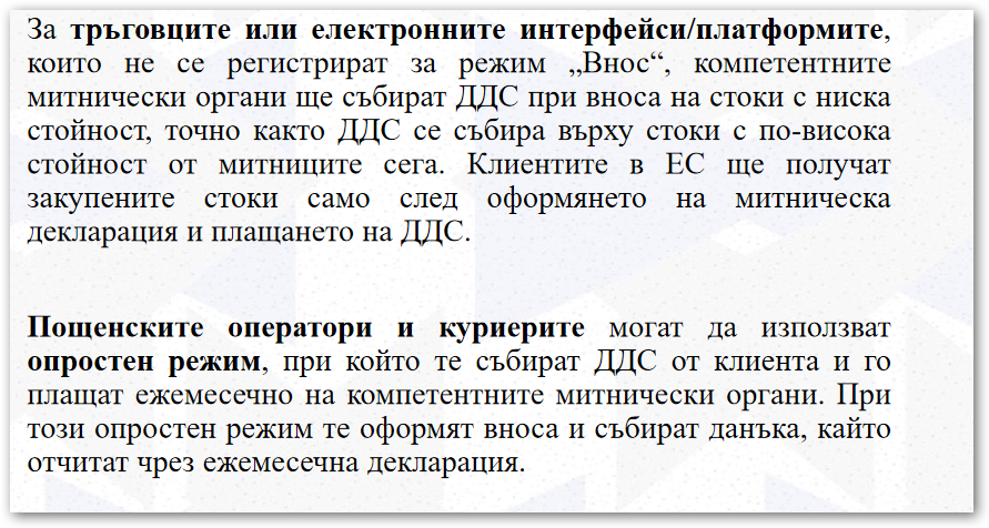 Купувачите ще си го плащат, още с пускането на поръчката. От там нататък продавачите ще превеждат събраното ддс в съответните данъчни администрации на конкретните държави.