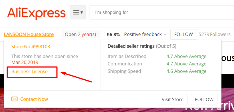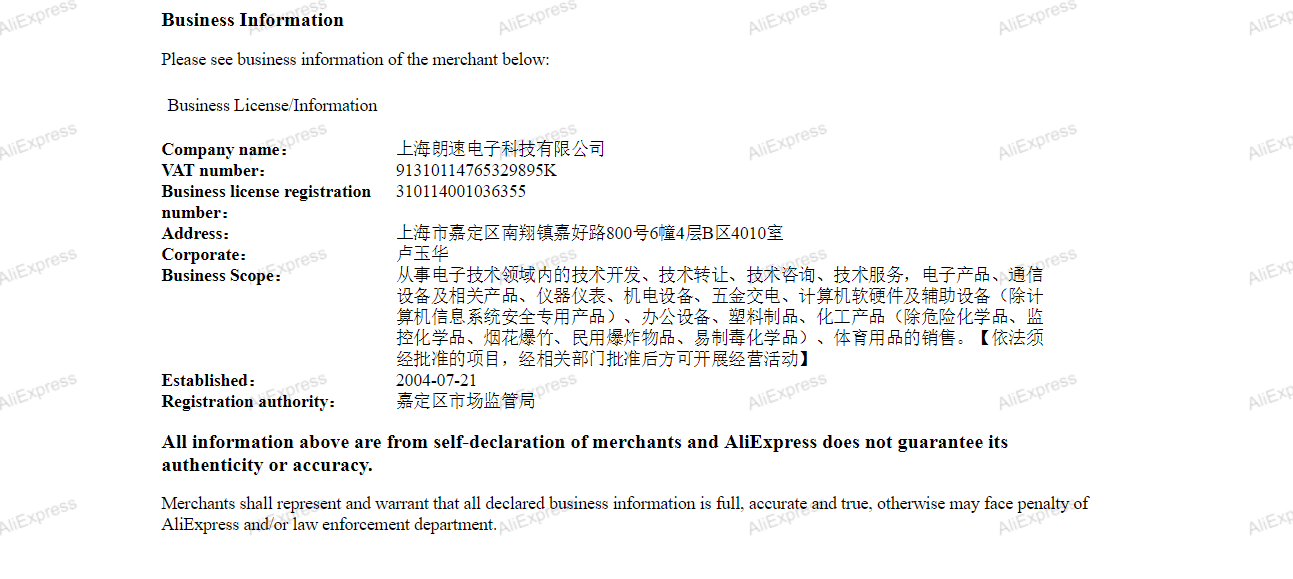 За всеки един търговец може да проверите какви данни е оставил в алиекспрес. Като кликнете върху името му излиза прозорец с надпиs Business License и там вече има детайли, но много често са на китайски.