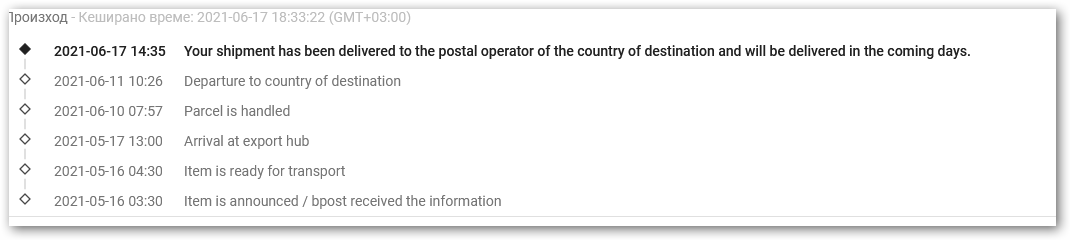 С белгийски пощи. В Диусбург, Германия е кацнала в събота..в сайта на белг.пощи още не е отразено кацването. Само в Кайано. Ма ще дойде, къде ще иде Grinning