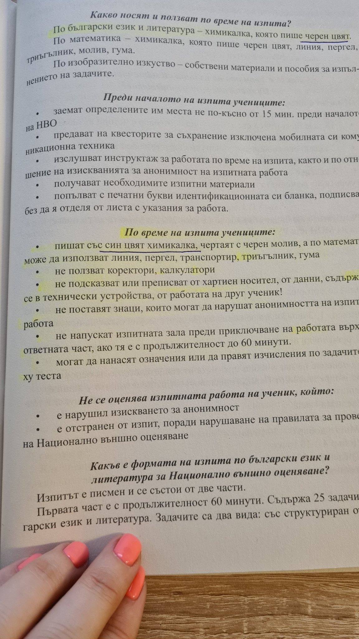 днес закупих справочника на Вектор и вътре на стр.11 на едното място пише да използват химикалка ,която пише черен цвят ,а по-долу пише да пишат с химикал син цвят .