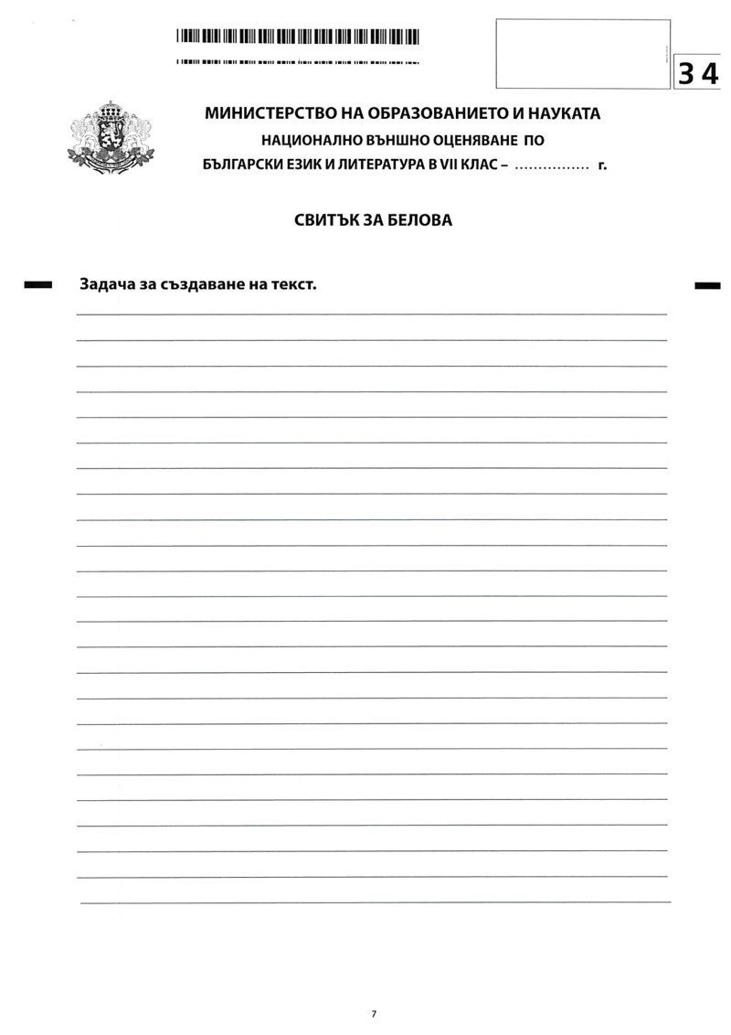 • 2-ри и 3-ти лист – листове за отговори – с разпределени на тях отговори на кирилица и определени места за писане на кратък свободен и разширен свободен отговор – цв. 2+0 + двустранна персонална информация – цв. 1+1 – черно;