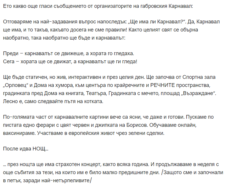 Е-е, под дом знаете - имам предвид града! И моля с маски... защото ще има награди за най-оригинална маска! Правилата са си правила - дори и на карнавал!
