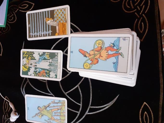 Аз се опитвам,но нищо не мога да разбера има карти,когато ги тегля успявам без да се задълбочавам да усетя положителни или отрицателни са картите.За тези идея си нямам....Паж чаши....ще ходим на море за първи път без съпругът ми без подкрепата му и в голямо приключение.Дали няма все пак бащата на малката да реши да ни придружи?...Висшата жрица....може би,че трябва да следвам интуицията си и да не отказвам от начинанието.Кралица пентакли.....никаква идея.Помогнете моля!