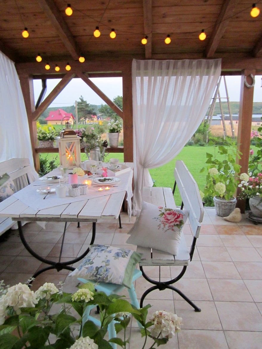 Понеже и аз се влюбих в полилеите и картината, а и в цялото патио, да си кажа: ако имах такава веранда, първо щях да реновирам парапетите и колоните (с импрегнатор и яхтен лак) и щях да сменя  масата и столовете с други, по-близки до стила на полилеите. Бих докарала нещо близко до любимите ми италиански веранди, с кът за почивка с кресла (не яйце) и кът за хранене (но това си е чисто мое мнение, де).