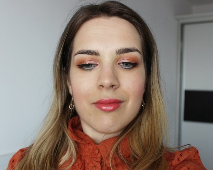 Това лято въртя и суча, все към карамелените топли нюанси посягам. Вчера отново бях с подобна комбинация на понеделнишката, но с разлика във финиша. Сенките са с по-едри частички и изглеждат по-блестящи. В основата на долния клепач нанесох тюркоазен молив нa Aura.