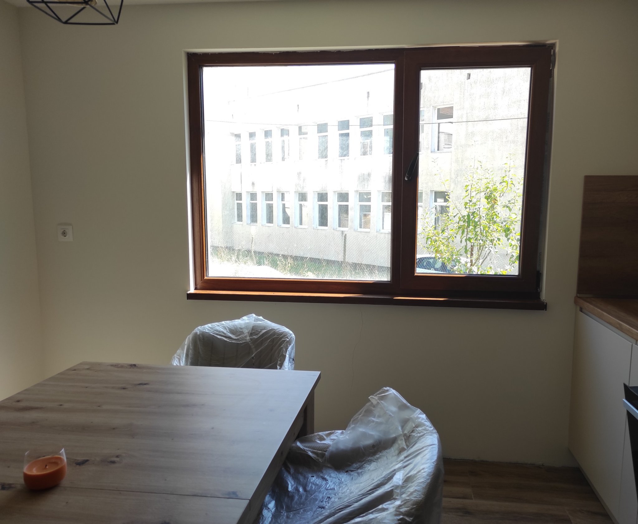 Какво мислите за прозорец с френски тип дизайн, щори ден и нощ и тънко перде отгоре?