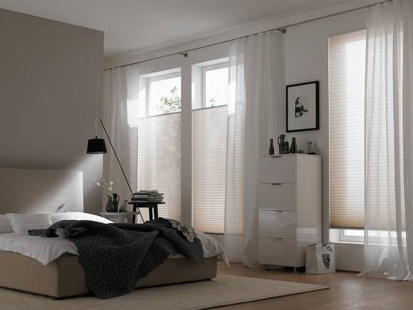 Какво мислите за прозорец с френски тип дизайн, щори ден и нощ и тънко перде отгоре?