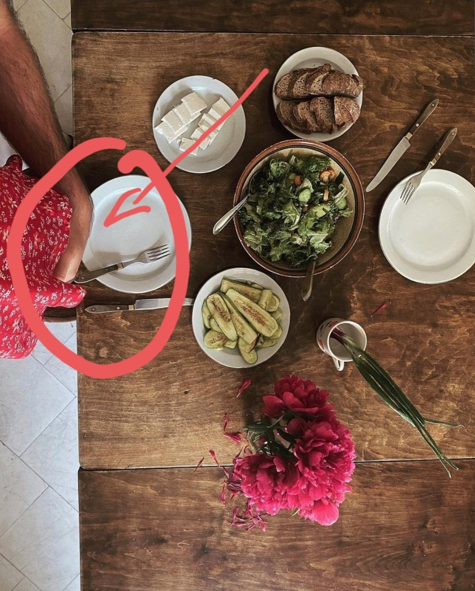 Снимката наистина е тъпа. Ако искаш да покажеш храната отвисоко, просто можеш да го направиш и без да вкарваш ръката, която те държи. Пък и ръката не е нужно да те държи, предполагам нищо не пречи да снима, стъпила на стол. Отделно на масата не виждам нищо, което да заслужава чак специална снимка. Такива снимки само затвърждават нежеланието ми да посещавам Инстаграм.