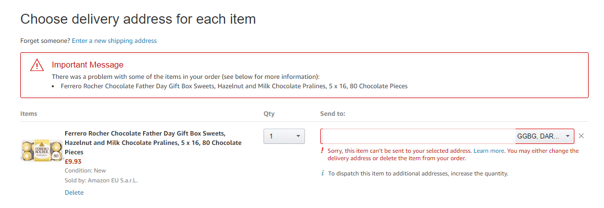 И при мен не дава доставка до никакъв адрес - нито в Англия, нито в Германия, нито в Италия.