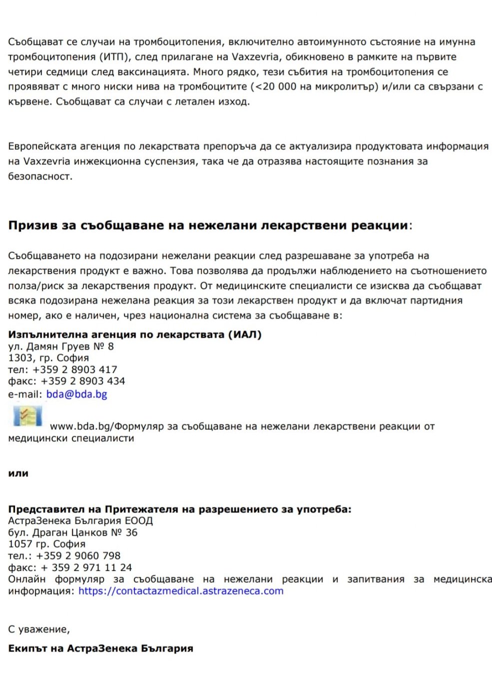 Онлайн формуляр за съобщаване на нежелани реакции и запитвания за медицинска информация: https://contactazmedical.astrazeneca.com
