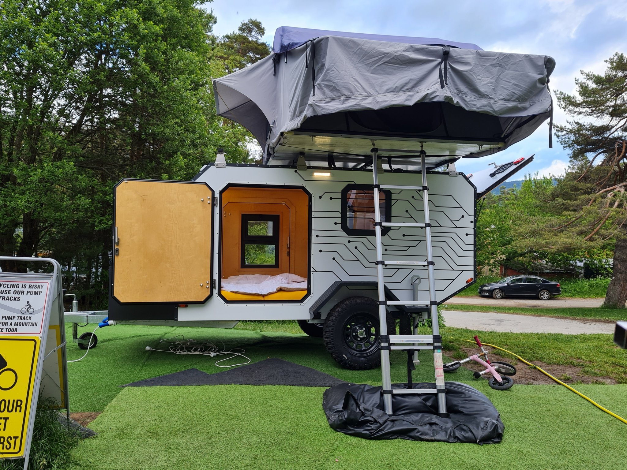 Има една каравана и палатка, в които децата могат да спят, ако имат желание: