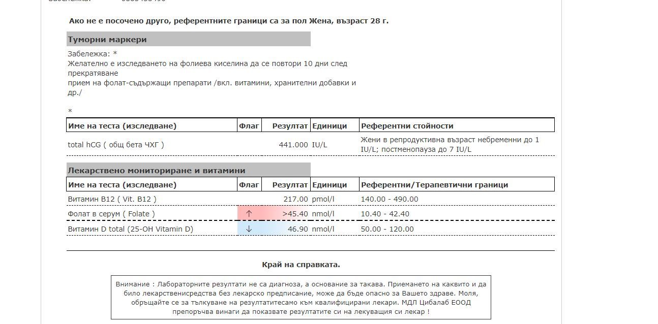 По въпроса за витамините, аз не съм спирала да приемам фолиева, желязо, Б6, Б12, Д. Знам, че е хубаво да са на горните граници.