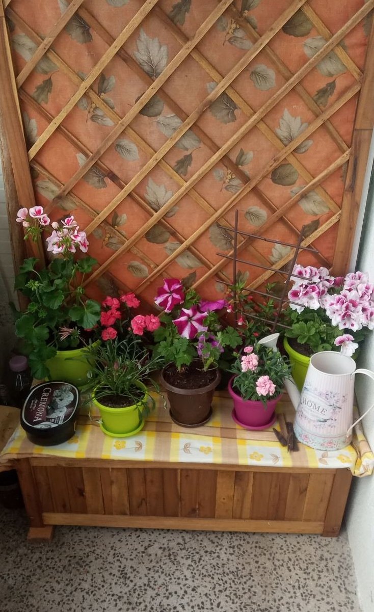 При майка ми имаме дълга и голяма тераса, украсена с много цветя. Ето част от нея: