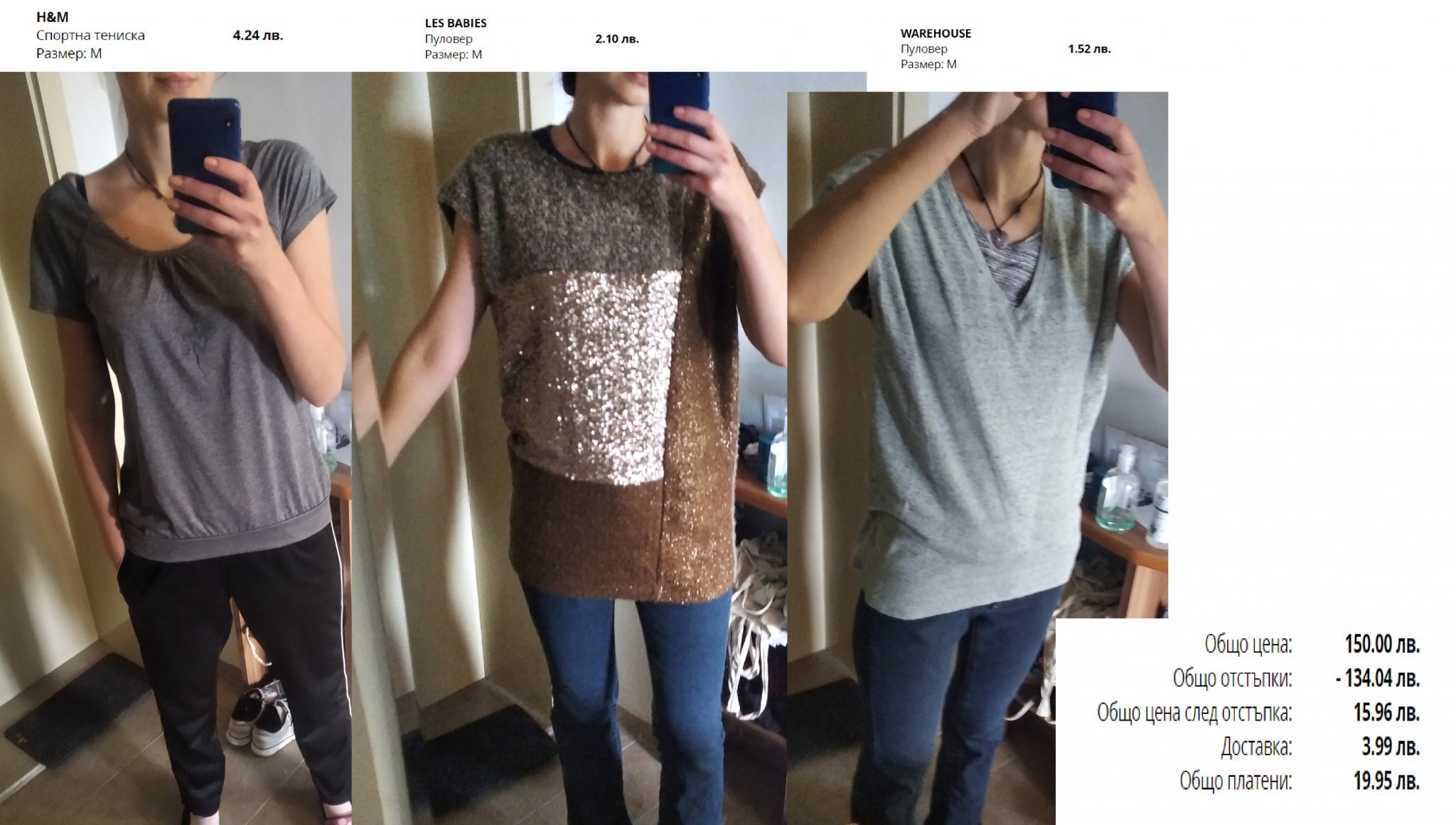 Дрехи даже за по-малко от левче. Онлайн не обичам даа пазарувам, просто защото обичам д си ровя и търся находки, но снощи не се сдържах и пазарих няколко неща за по лев-два три макс. Просто като видях тези цени.