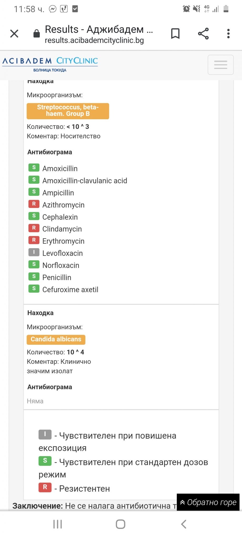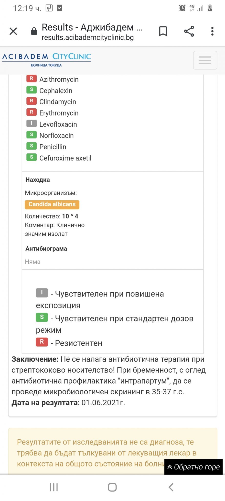 Чакам Агто да ми отговори. Иначе съм.за естествено раждане, доста лоши неща прочетох за тази инфекция..дали има мами с подобен резултат?