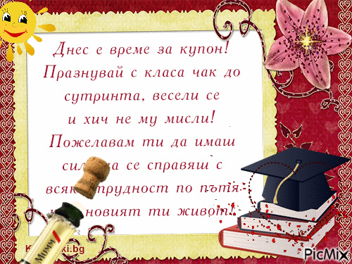 Аквамарин, честит абитуриент, да ви е жив и здрав!  Весел празник! Wink