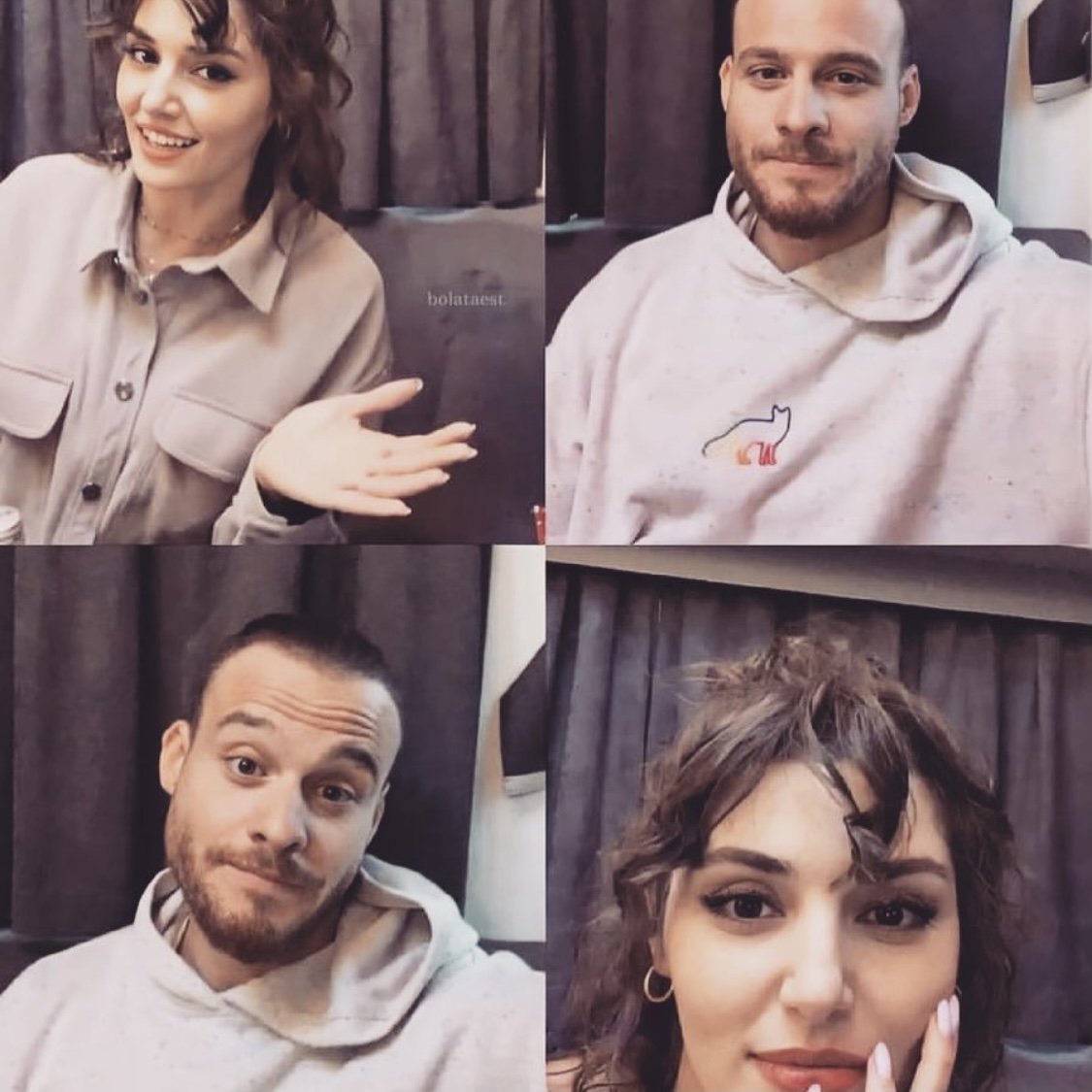 Бяха Керем, Ханде, Анъл, Башак, Неслихан и Алиджан. В началото ходеха, бяха само Ханде и Керем, помислих, че се разхождат. Керем беше доста запъхтян. Пак изненада Ханде. Зад тях беше екипът. Явно снимат. Изглежда е хладно при тях. Но Ханде и Керем по никакъв начин не демонстрират това, че са двойка. Надявах се на повече близост, но приемам и уважавам решението им. Много тактични и интелигентни хора са. И по никакъв начин не привличат вниманието само към себе си. Тъкмо обратното. Керем снимаше всички. Прегърна първо Неслихан, после Анъл. Много ми харесват отношенията в екипа. Радвам се, че са толкова близки. Голям кеф и късмет е да си част от този каст. Simple Smile