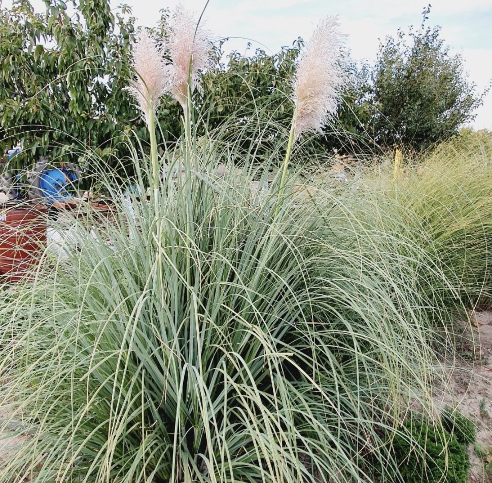 Това са други треви.Приличат на пампаска,но цъфтежа е по-ситен.Имам изсушени,но незнам как се казват.Също са ефектни и са по-прибрани.